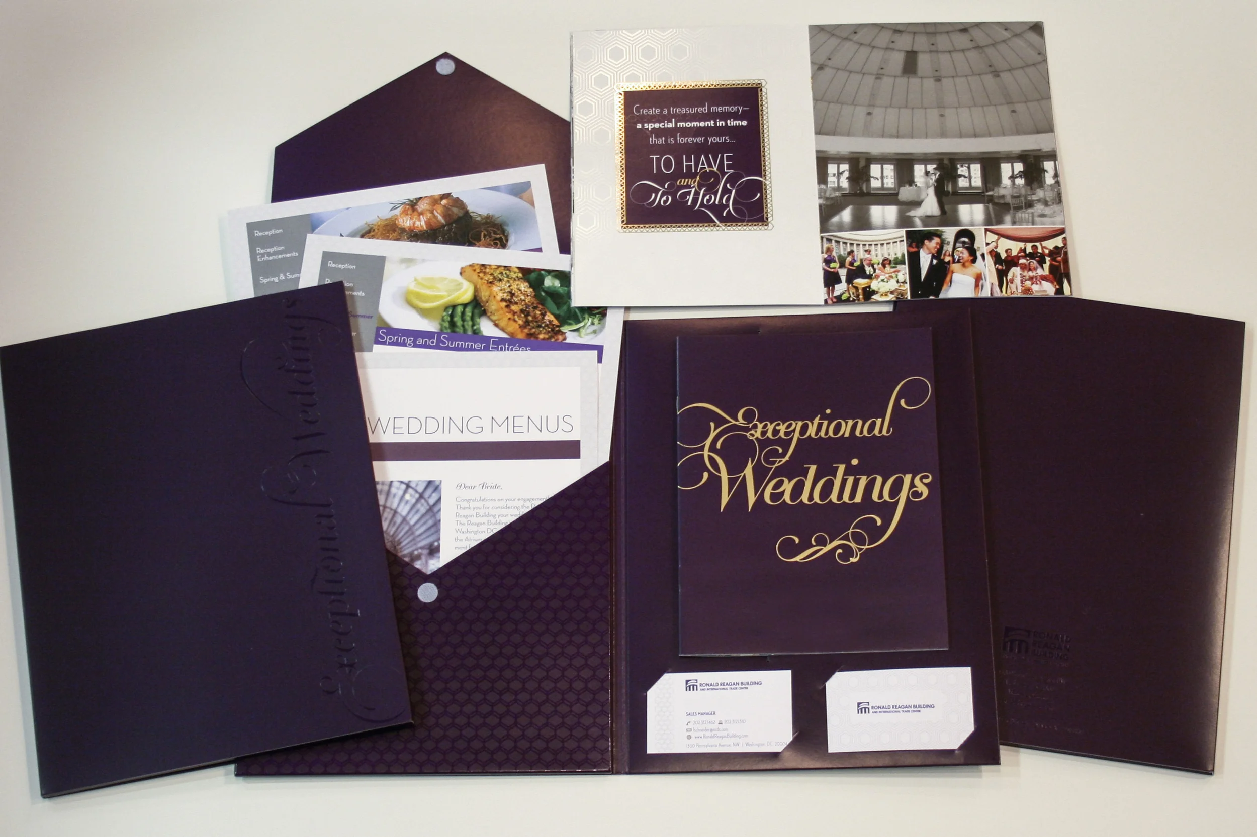 The custom folder was designed to act as a stand-alone piece and incorporated a removable brochure that could be updated and printed separately on a regular basis to cut down on printing costs. The design blends photography with texture created from an overlay of clear foil patterns. The redesign of the this piece offers cost-savings and the flexibility for the sales team to customize each packet of information based on the needs of their potential clients.
