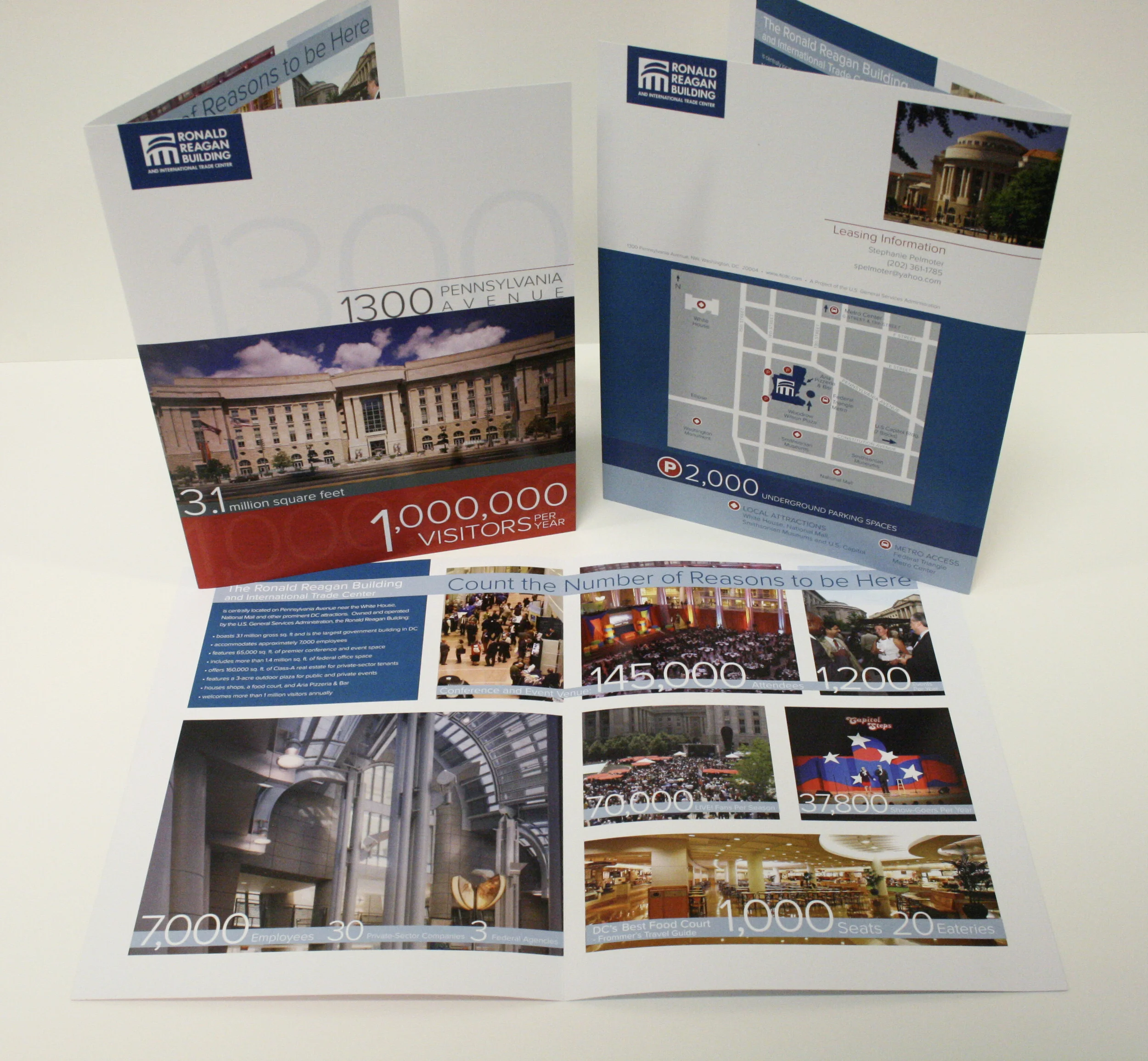 The Retail Brochure was designed to sell tenant space and feature the amount of activity and visitors the building receives yearly.